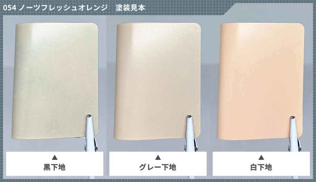 左から黒下地、グレー下地、白下地の順での塗装イメージになります。