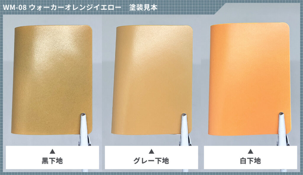 左から黒下地、グレー下地、白下地の順での塗装イメージになります。