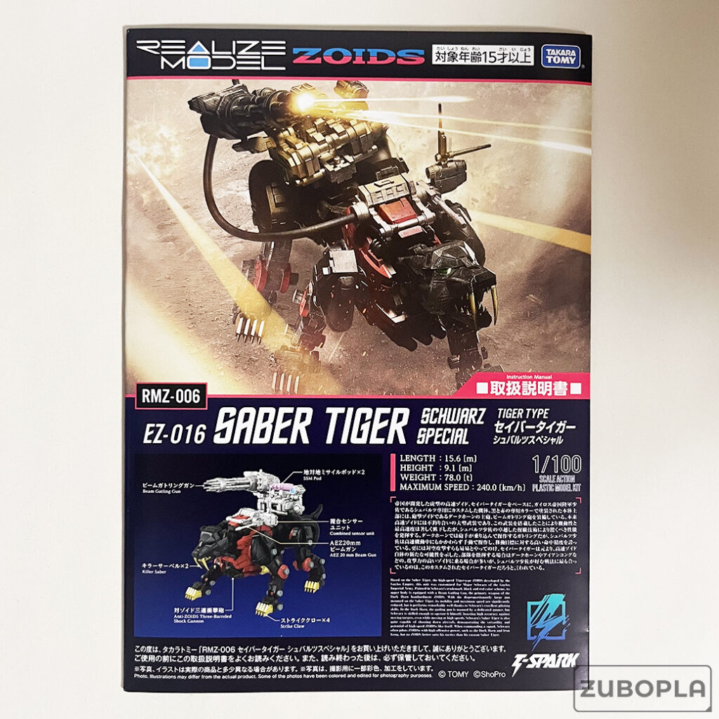 制作するのは、2025年8月にタカラトミーより発売のリアライズモデル 1/100 RMZ-006 セイバータイガー シュバルツスペシャルです。元は2025年6月下旬に発売予定でしたが、諸般の事情で延期になっていました。