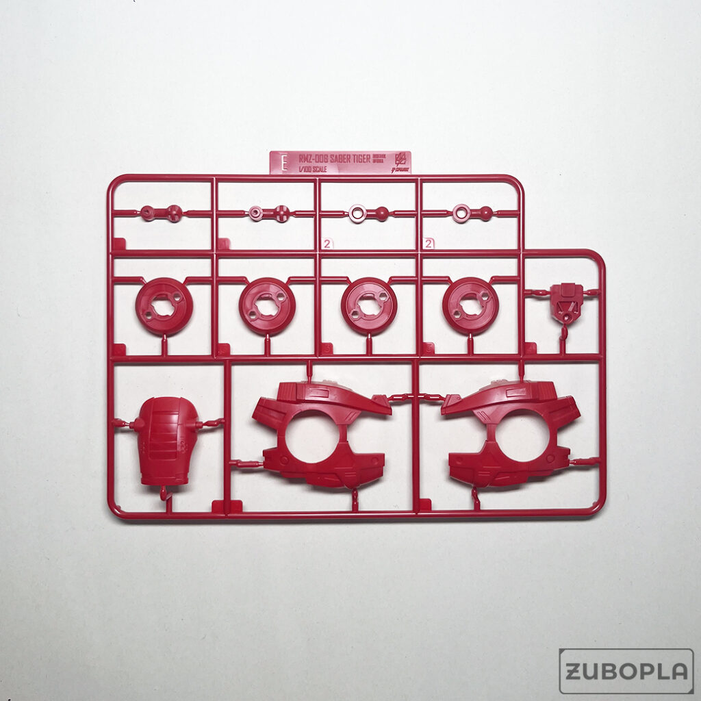 ランナーEはピンク味があり、少々トーンの暗い赤の成形色。