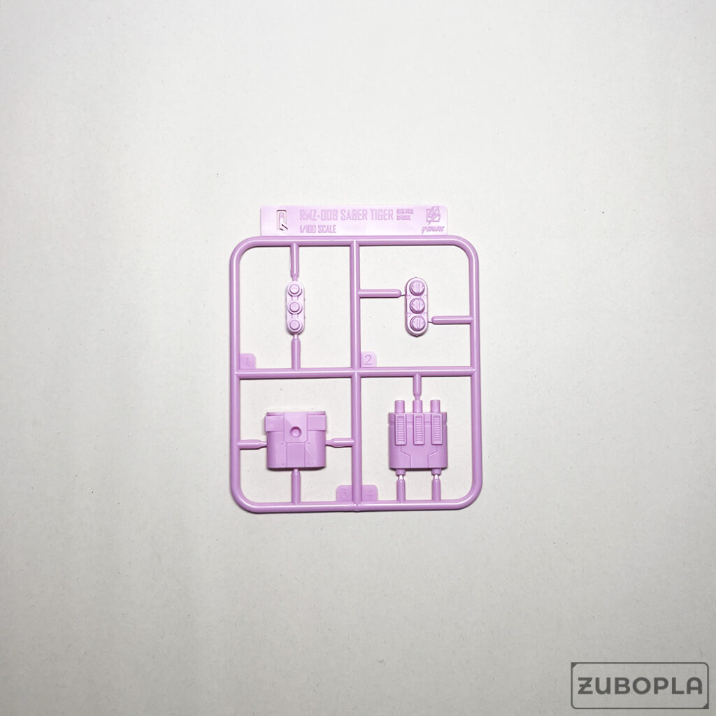 ランナーQは唯一のライトパープルの成形色。背部「地対地ミサイルポッド」のパーツです。