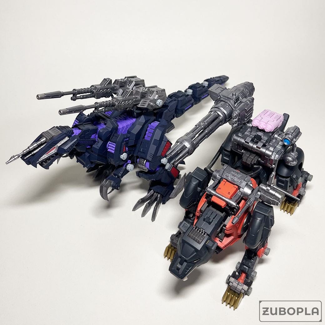 どっちも大型ゾイドに区分される機体なのもあり劇中のイメージ同様、本体のサイズ感に差はありません。