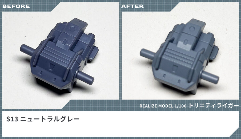 クレオスのスプレー缶塗料『S13 ニュートラルグレー』で成形色に直接塗装。