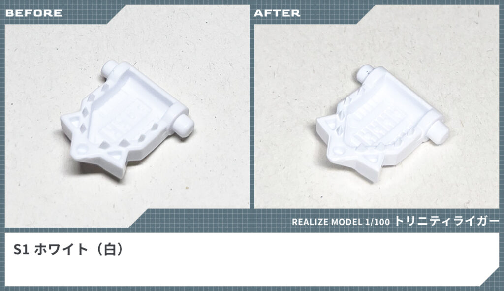 クレオスのスプレー缶塗料『S1 ホワイト(白)』で塗装。下地はナシで成形色に直接塗装しています。