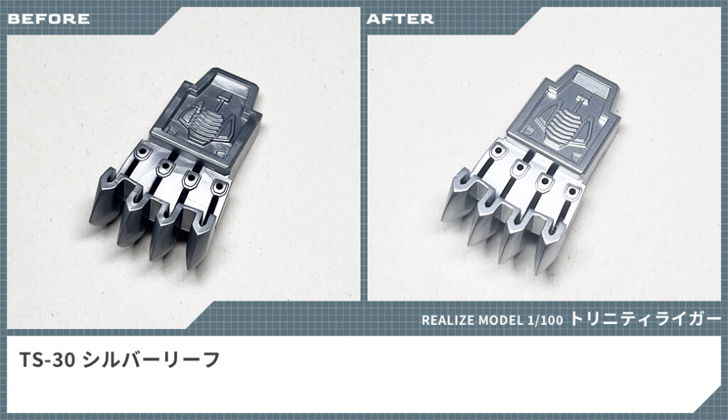 こちらはタミヤのスプレー缶塗料『TS-30 シルバーリーフ』で塗装。塗装の下地にはクレオスの『Mr.フィニッシング サーフェイサー1500 ホワイト』を使用。