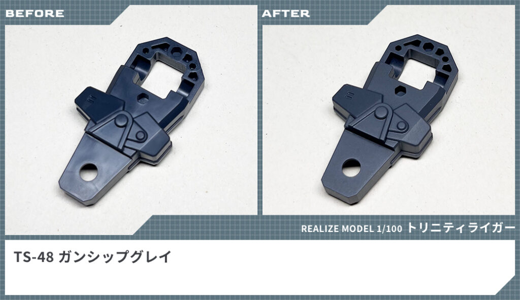 こちらはクレオスのスプレー缶塗料『TS-48 ガンシップグレイ』で塗装。下地はナシで成形色に直接塗装しています。