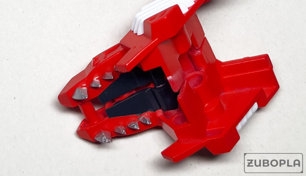 牙の部分はクレオスの水性塗料『H8 シルバー(銀)』を筆塗りで塗装。口の中も筆塗りで、クレオスの水性塗料『HUG07 ファントムグレー』で塗装しました。