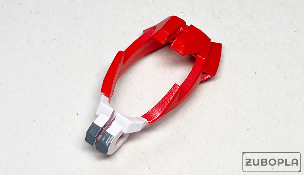 上顎を含む頭部パーツも元は赤一色のパーツです。全体をガイアノーツの『NC-003 フレイムレッド』で塗装した上で塗り分けしました。