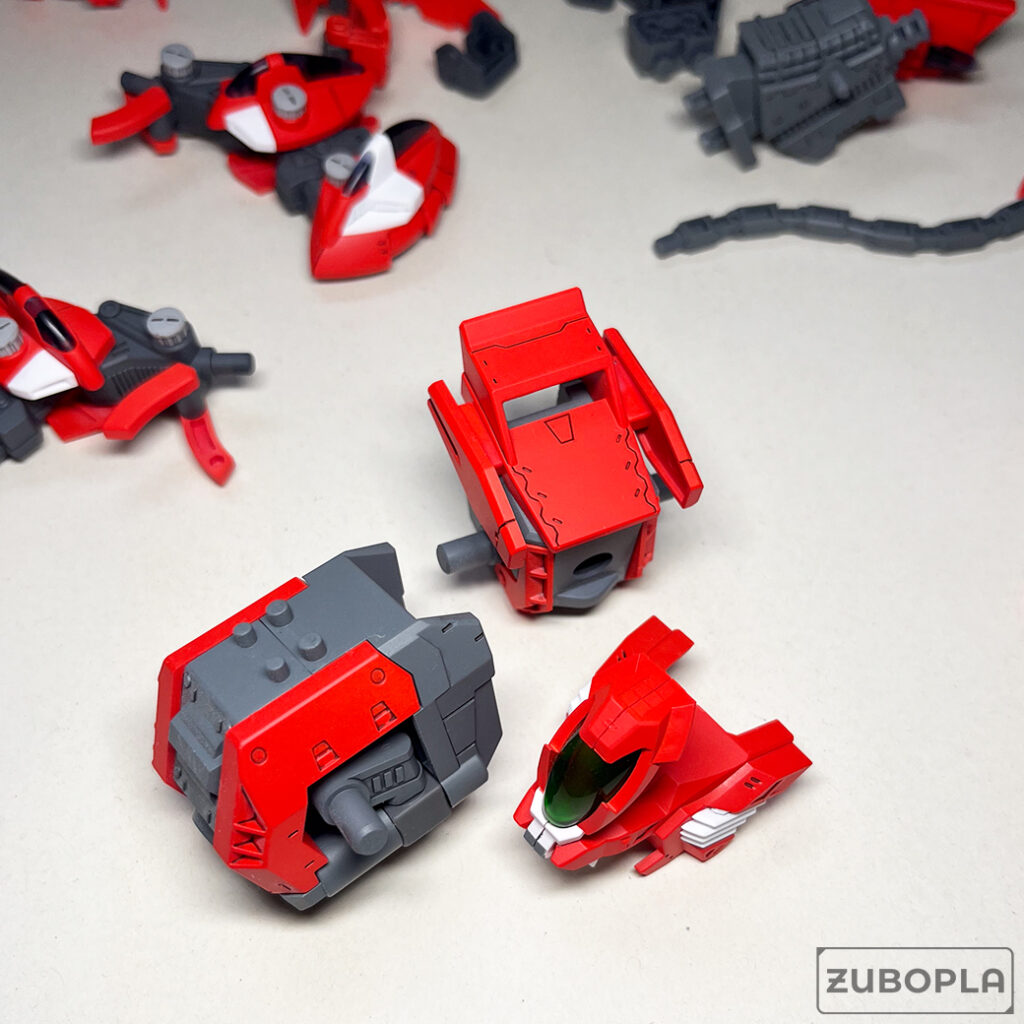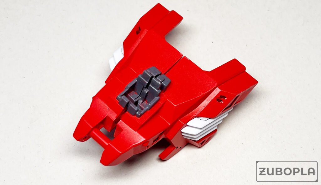 中央にキャノピーがはまる頭部パーツは、赤一色の成形色になってます。本来は先端は白く、鼻先がグレーの配色なので塗り分けました。